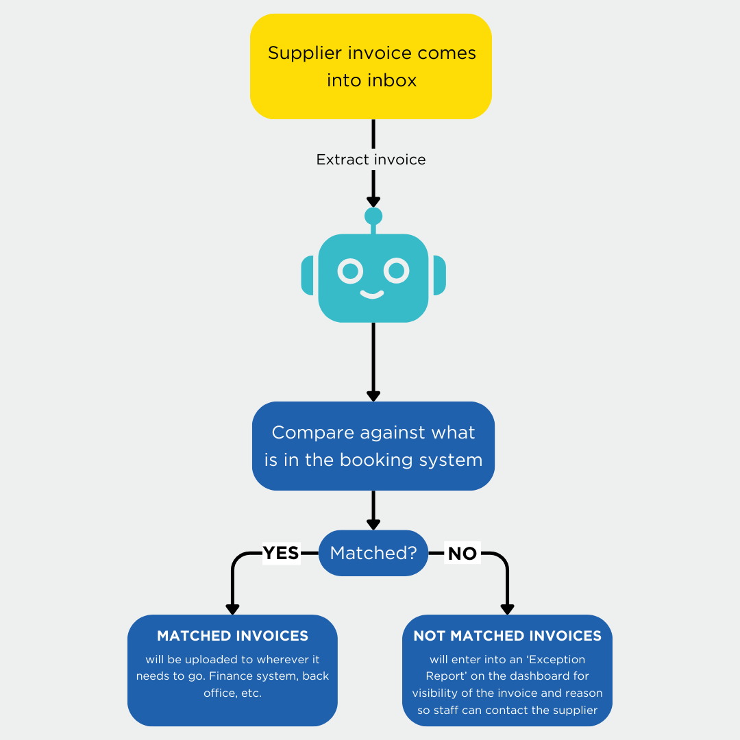 Traverse Automation's AI-driven solution simplifies this process. Our automated system extracts supplier invoices from your inbox, matches them to the booking system, and processes them seamlessly. If there's a discrepancy, the system flags it as an exception, providing easy visibility for review and resolution.