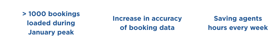This benefit of this project has been 2-fold, not only are we saving agents hours per week in the time taken to load bookings into the CRM, we are also ensuring the data loaded is accurate by removing the need for agents to re-type information from one system to another.